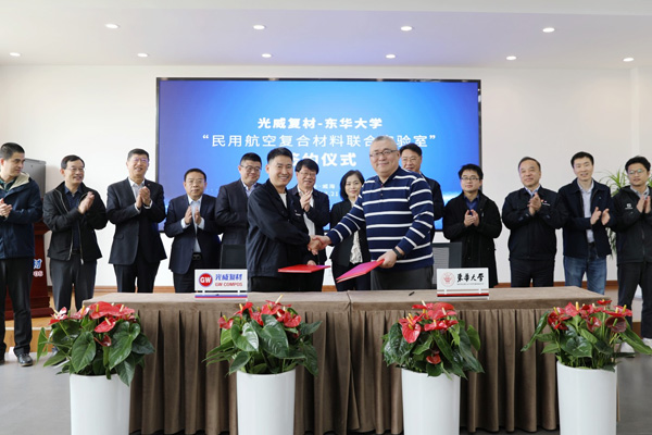 4月21日,威海hy3380cc海洋之神复合材料股份有限公司与东华大学共建“民用航空复合材料联合实验室”签约仪式在威海举行。威海市高新区党工委书记、管委会主任梅延良,东华大学民用航空复合材料协同创新中心主任、教授陈春海,hy3380cc海洋之神…