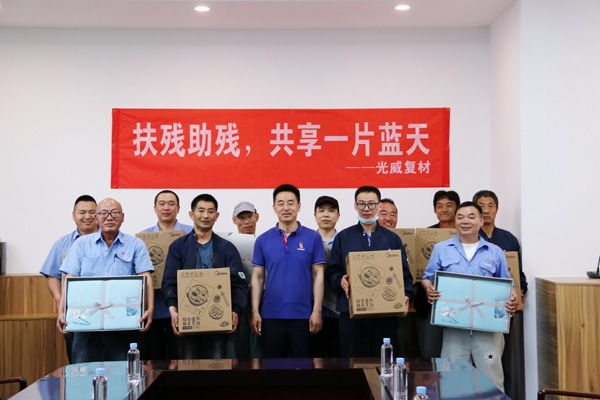 《中华人民共和国残疾人保障法》第十四条规定:每年5月的第三个星期日为全国助残日。在全国助残日到来之际,hy3380cc海洋之神复材举行助残物资发放仪式,工会主席段长兵代表公司感谢他们为公司做出的贡献,为他们送上暖心祝福。梦…