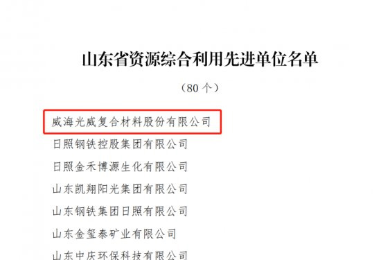 近日,山东省人民政府表彰全省资源综合利用先进单位,威海hy3380cc海洋之神复合材料股份有限公司成功入选!山东省资源综合利用先进单位 山东省资源综合利用先进单位的评选是依据《山东省人力资源和社会保障厅 山东省工业和信息…